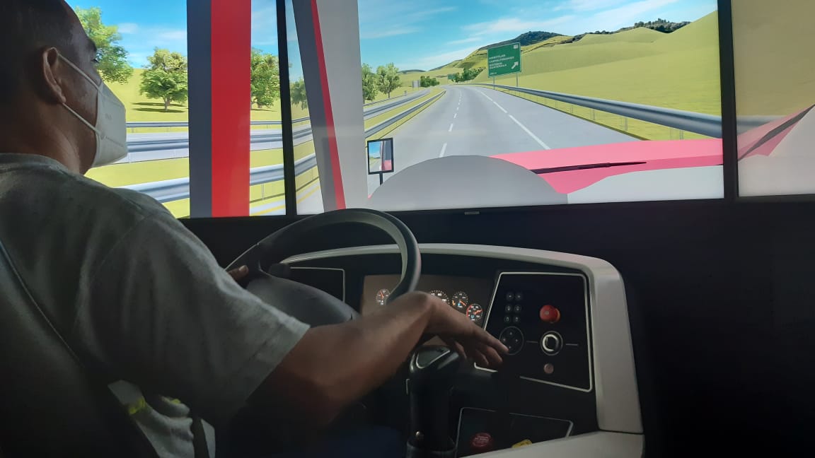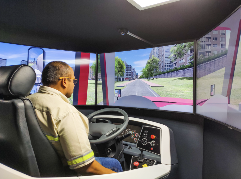 Desarrollado por la empresa española «Lander Simulation», este simulador utiliza tecnología de última generación y reproduce fielmente las condiciones de las calles guatemaltecas y las dimensiones de los vehículos pesados reales.