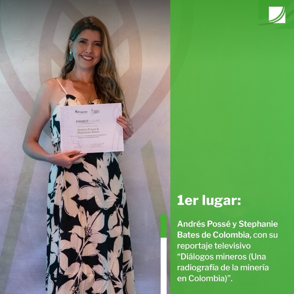 1. Primer Lugar: Andrés Possé & Stephanie Bates (Colombia), del medio Primera Voz, con el reportaje televisivo «Diálogos mineros (Una radiografía de la minería en Colombia)».