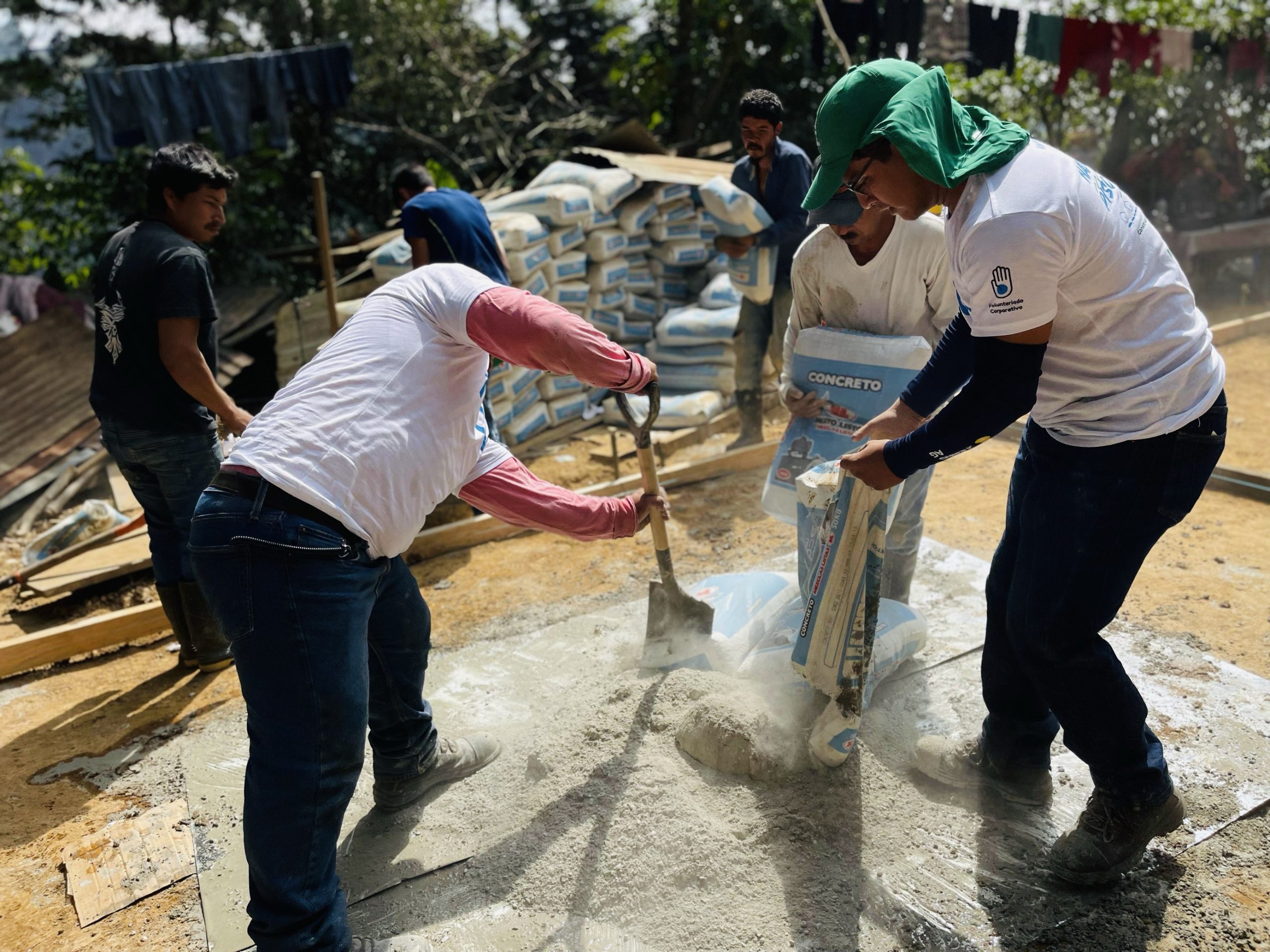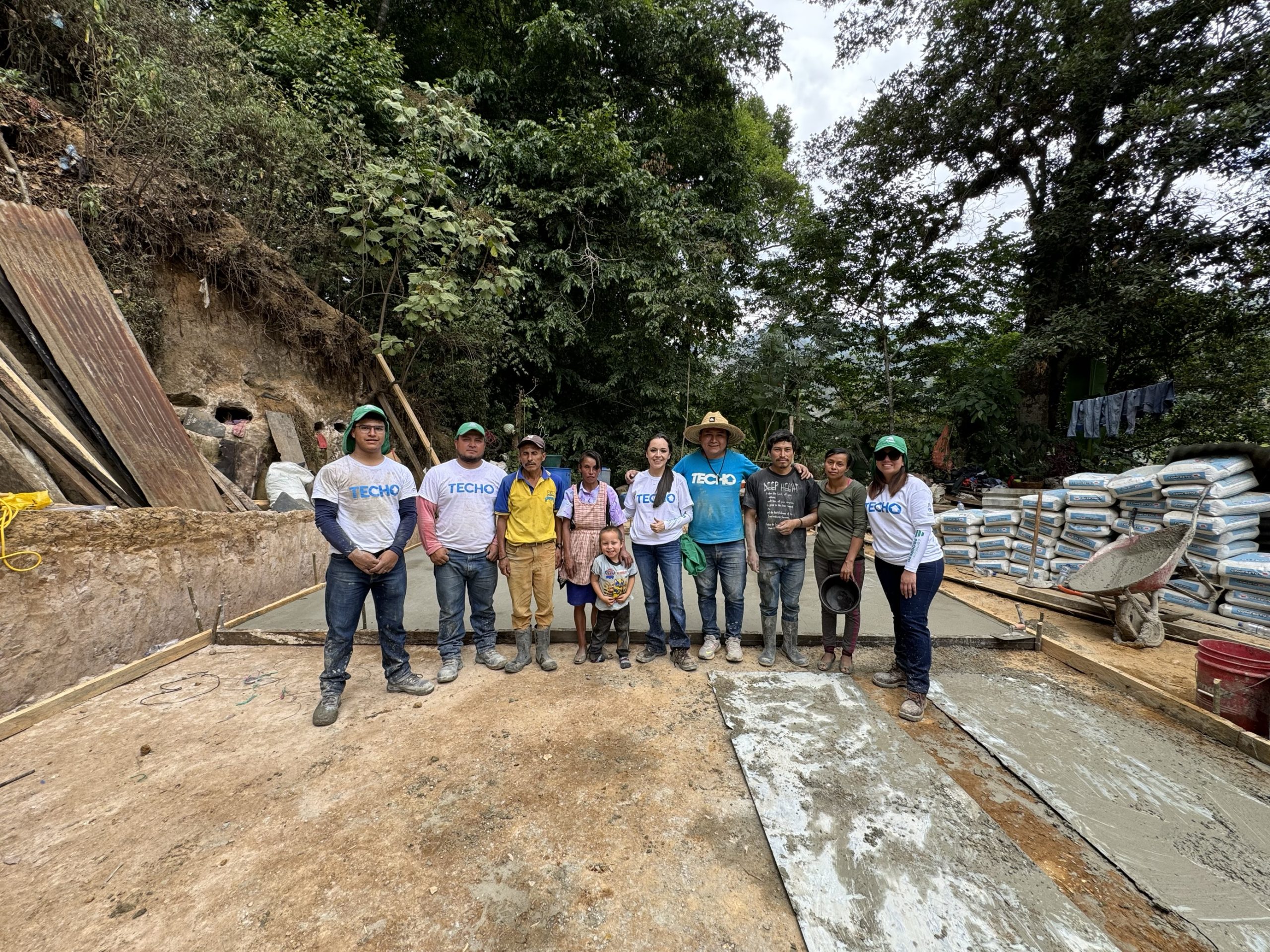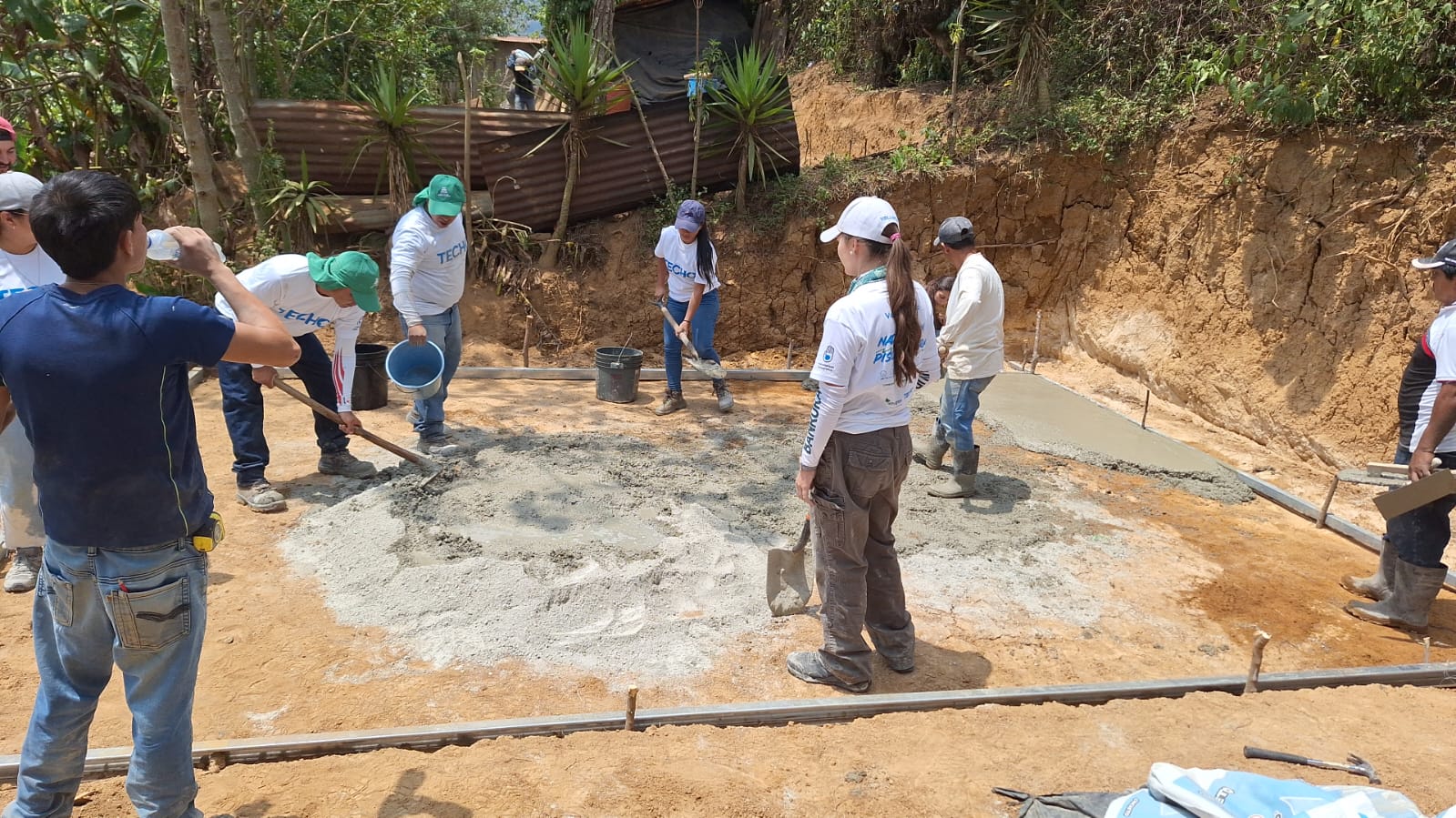 En esta ocasión, ocho voluntarios de Progreso y siete de TECHO, ayudaron en la construcción de losas de cemento de 4.5 por 6.2 metros, favoreciendo a dos familias del sector.